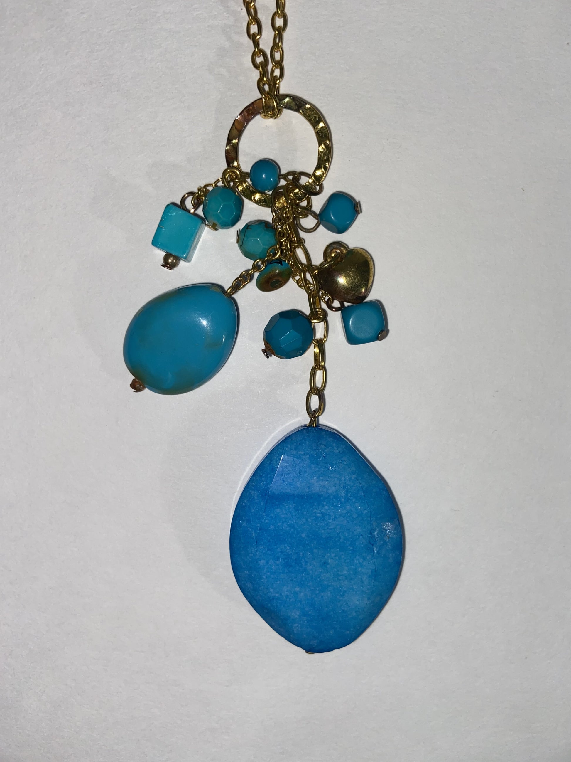 This exquisite Verona necklace featuring a stunning oval blue stone pendant has a unique bohemian flair. The chain necklace is perfect for any occasion whether it's a day at the beach or a night out on the town. The pendant is intricately designed with an artistic touch that adds a touch of sophistication and class to your look.ย
